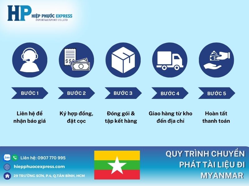 Quy trình vận chuyển giấy tờ tài liệu sang Myanmar tại Thành phố Hồ Chí Minh được thực hiện qua những bước sau :