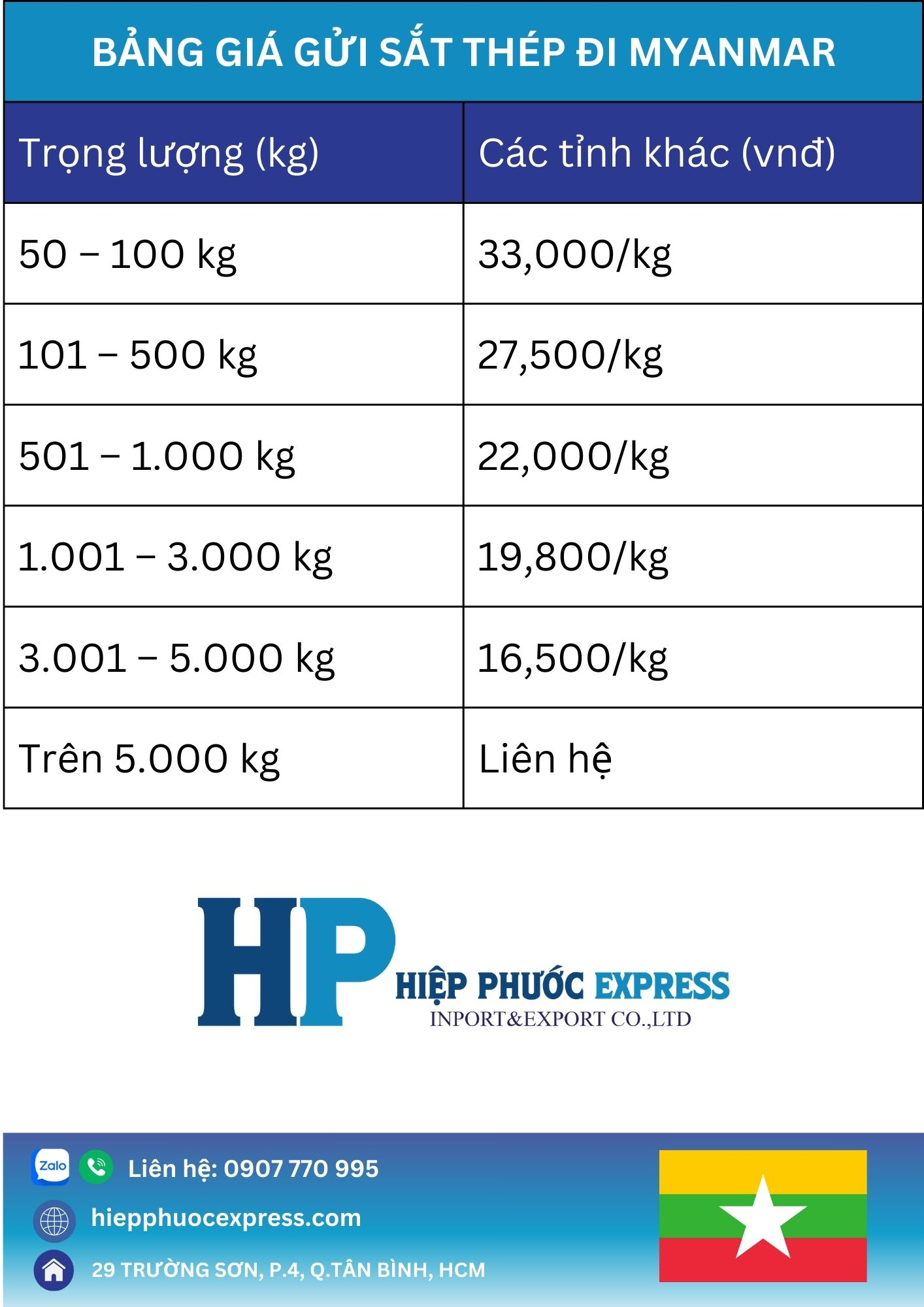 Hashtag: #guihangdimyanmar #guihangdimyanmargiare #vanchuyenhanghoadimyanmar #hiepphuocexpress